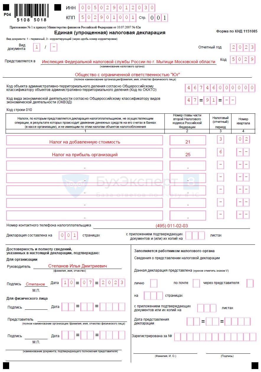 - В реквизитах укажите 1, поставьте подпись и дату. (Если у вас есть печать, ставить её не нужно.)