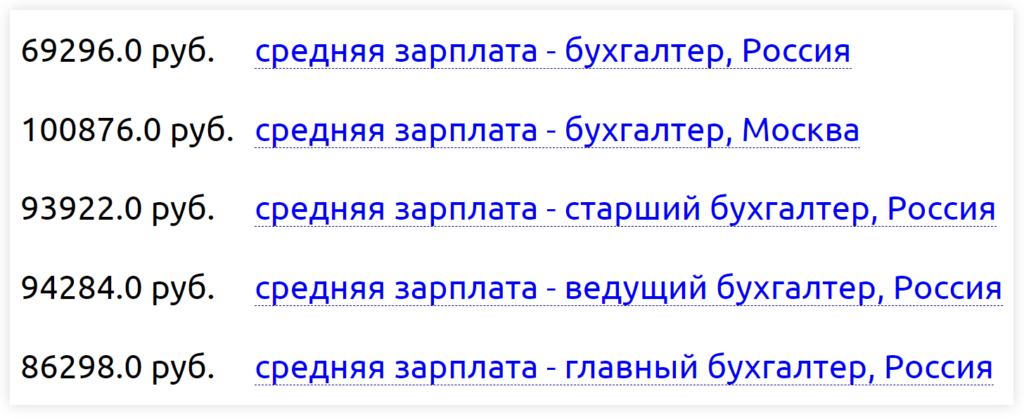 По данным сервиса zarplan, средняя зарплата бухгалтера по России и в Москве на август 2023 составляет порядка 70 000 и 100 000 рублей соответственно:
