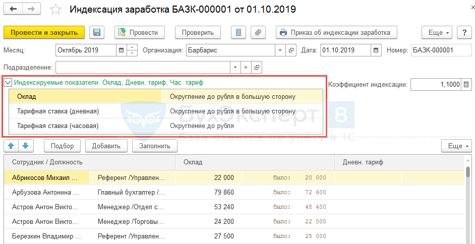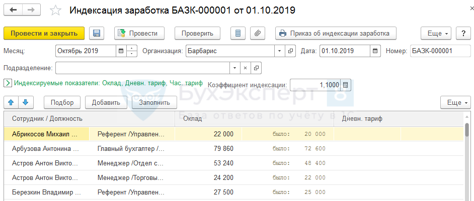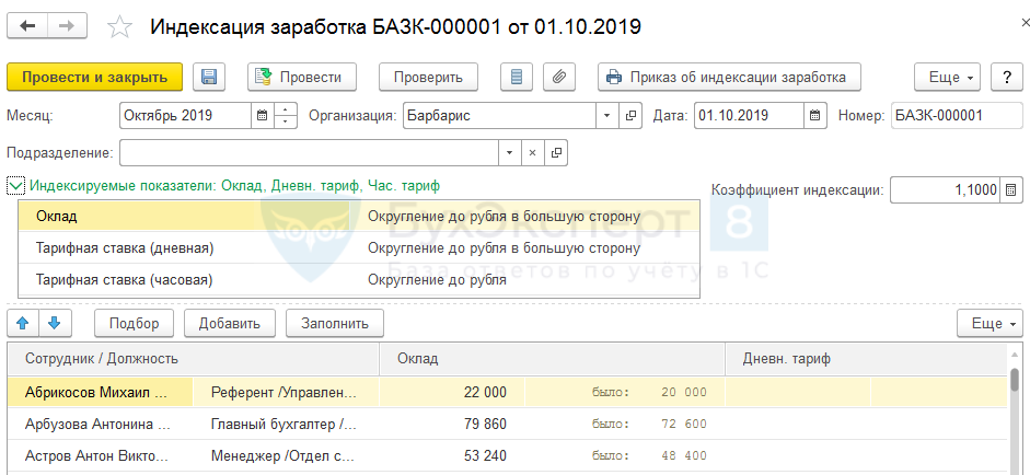 В документе Индексация заработка расчет и заполнение будут произведены автоматически: