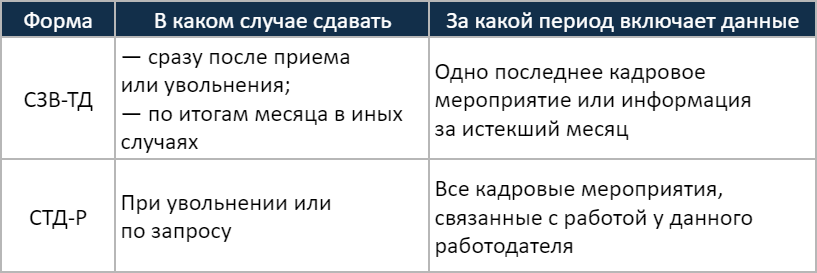 Срок сдачи СЗВ-ТД зависит от вида кадрового мероприятия ():