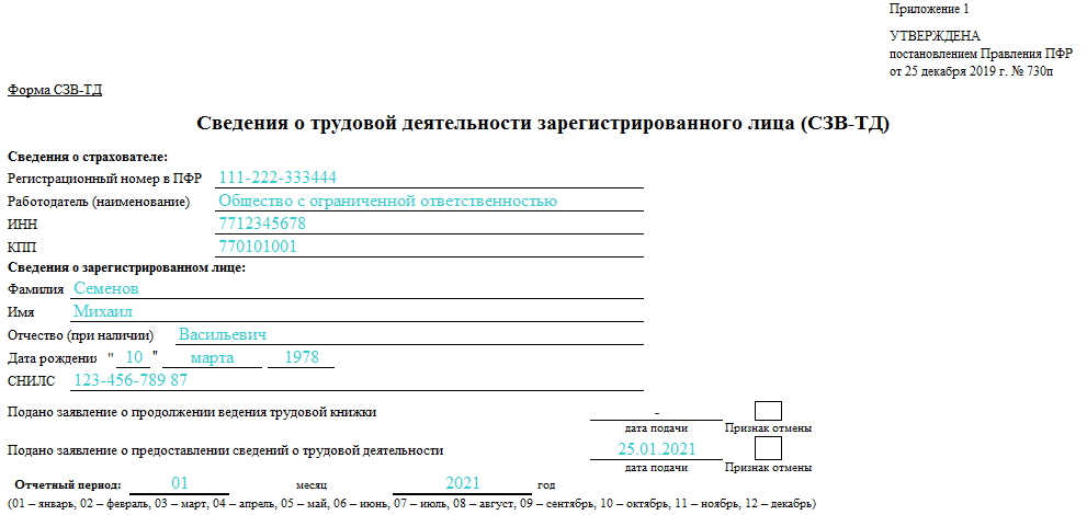 Отчет по форме СЗВ-ТД для передачи в ПФР