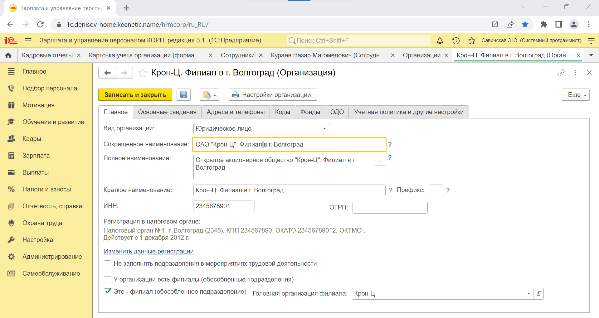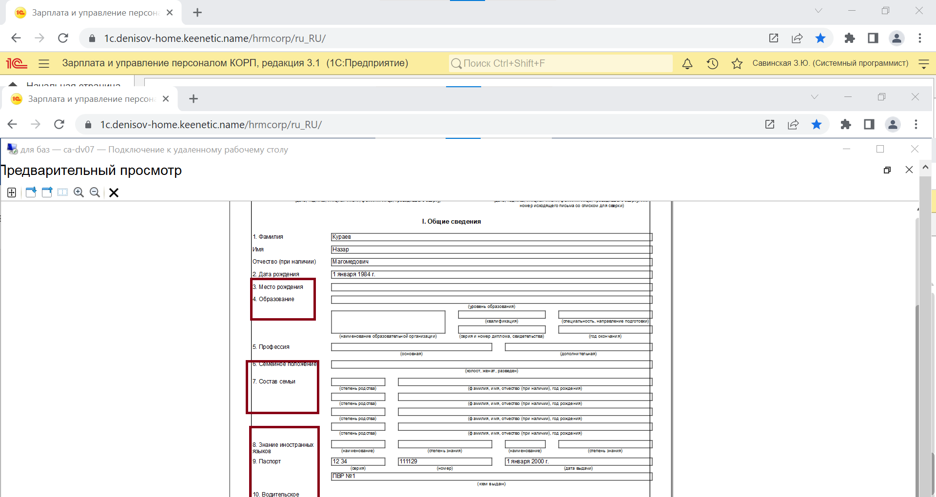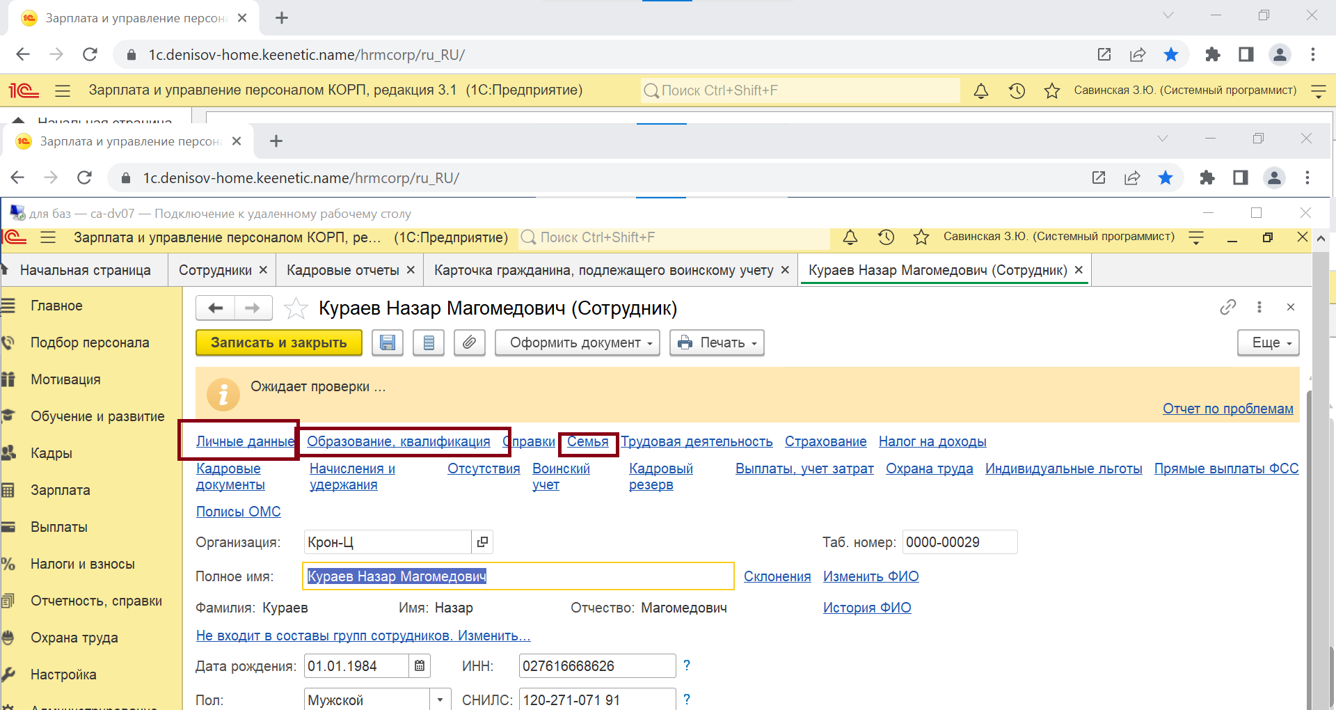 информация. Ее тоже необходимо подробно заполнить в карточке сотрудника или проверить корректность ранее