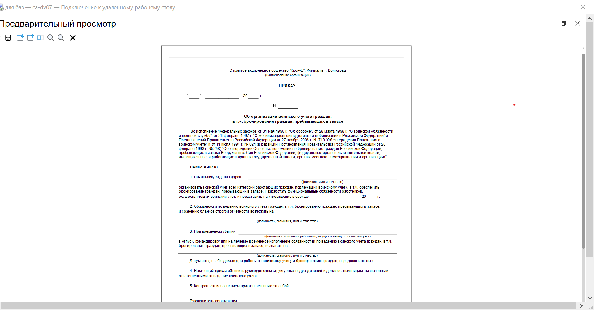 Рис.8. Печать документа «Приказ об организации воинского учета»