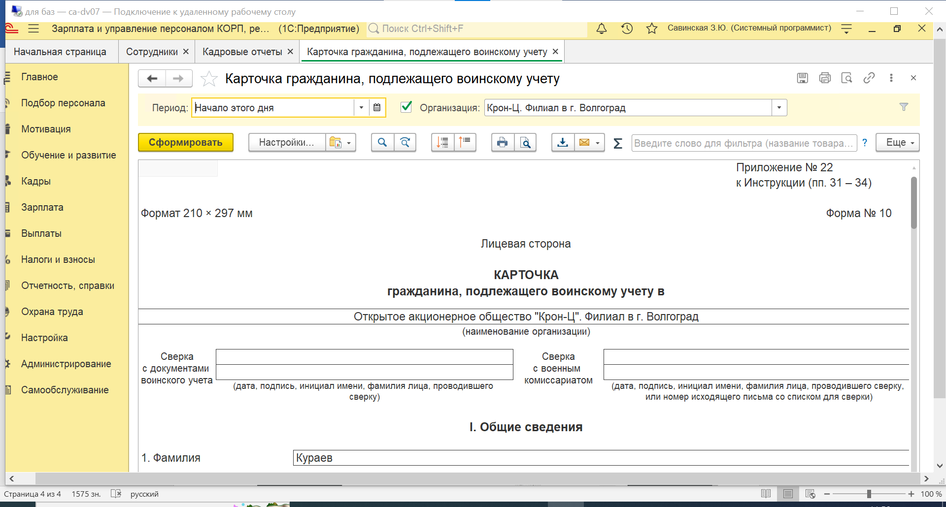 Рис.14. Карточка сотрудника, подлежащего воинскому учету
