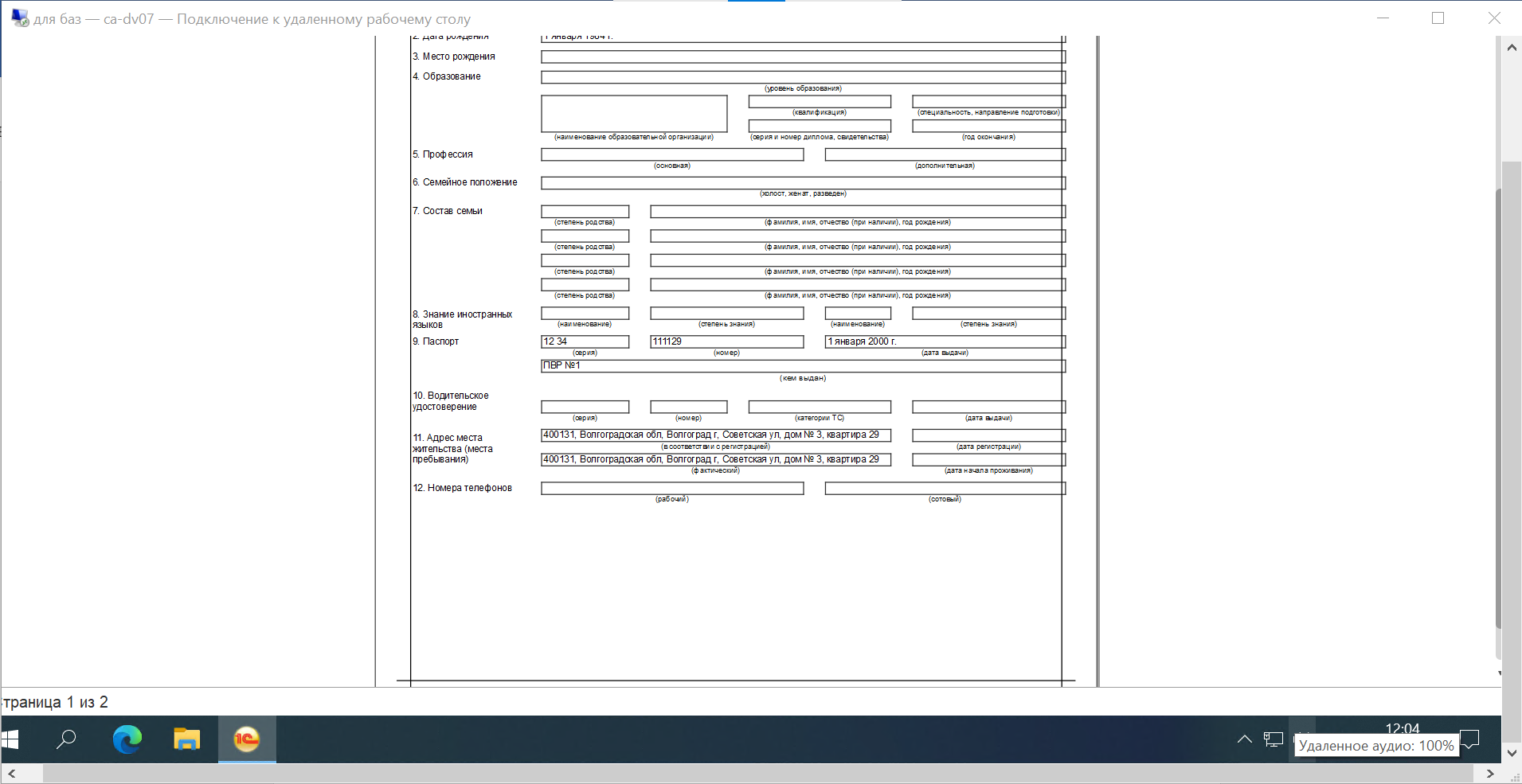 Рис.12. Отчет «Карточка гражданина, подлежащего воинскому учету»