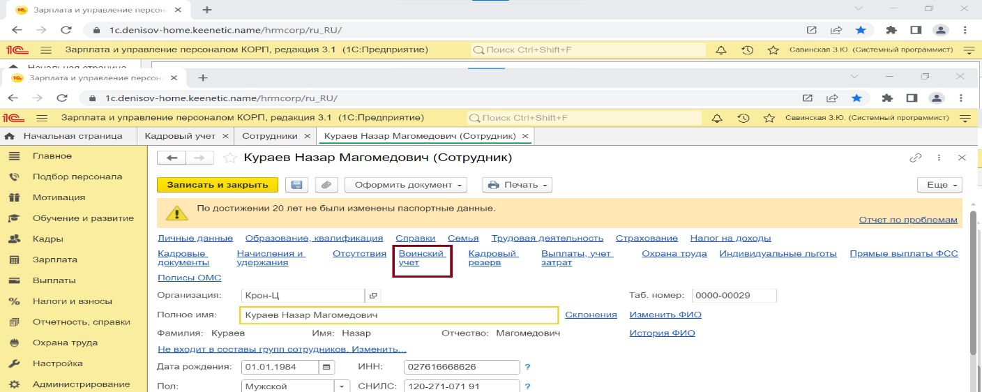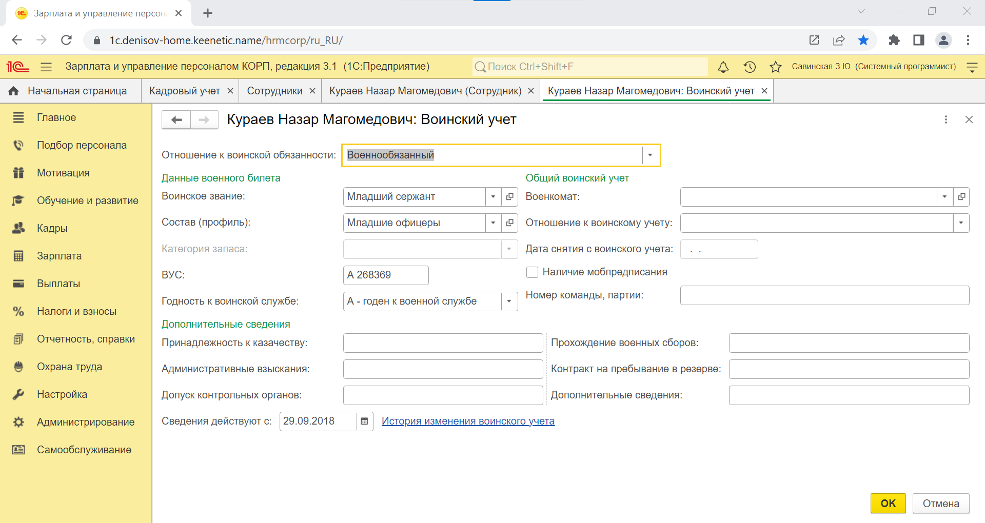 Как вы можете видеть, в карточке присутствуют не только данные о воинском учете, но и другая подробная
