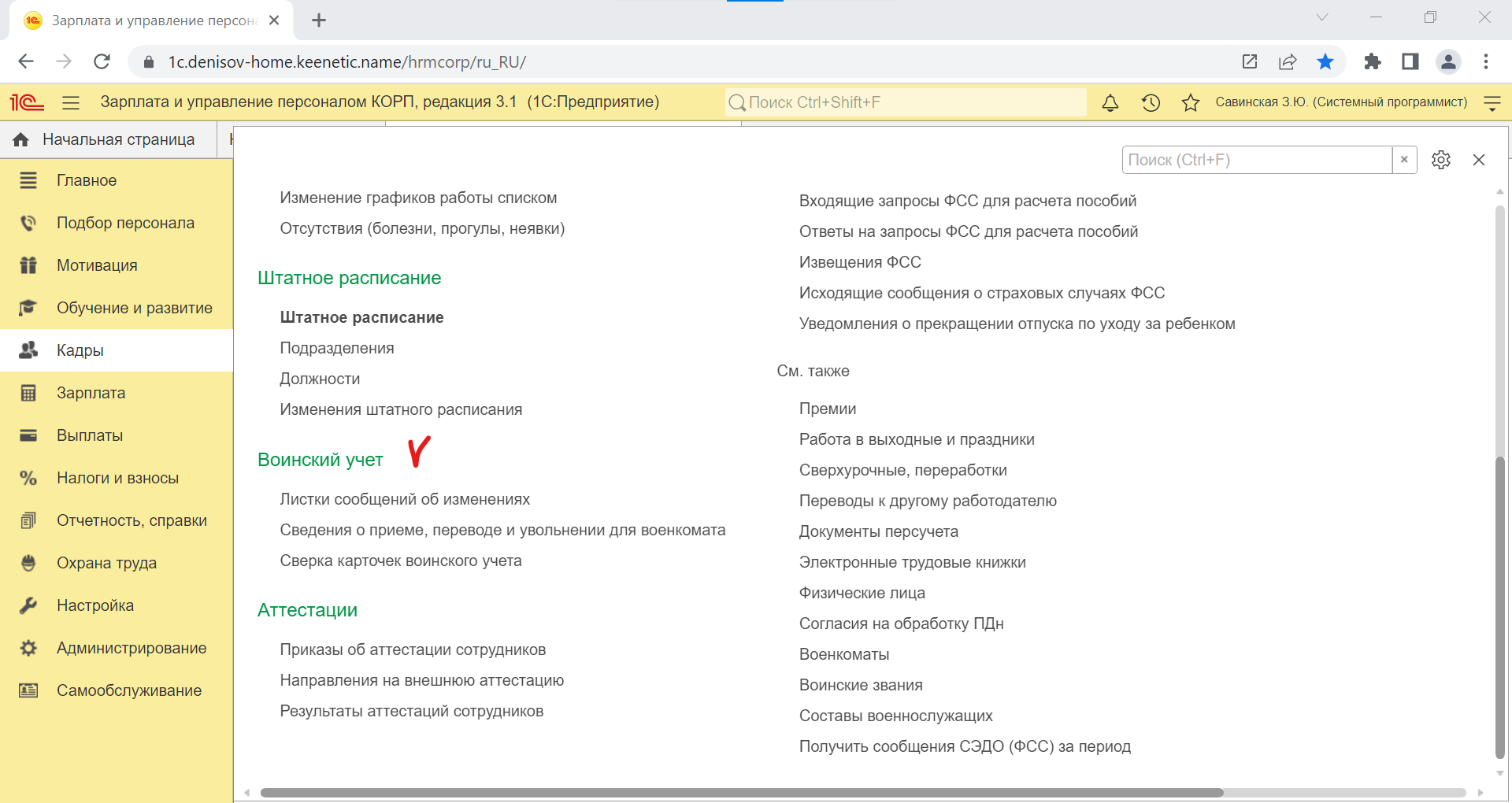 Как включить раздел «Воинский учет» и настроить программу «1С:ЗУП»