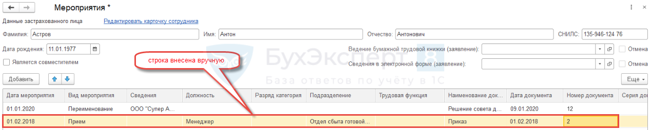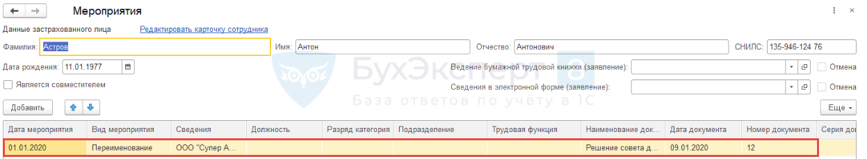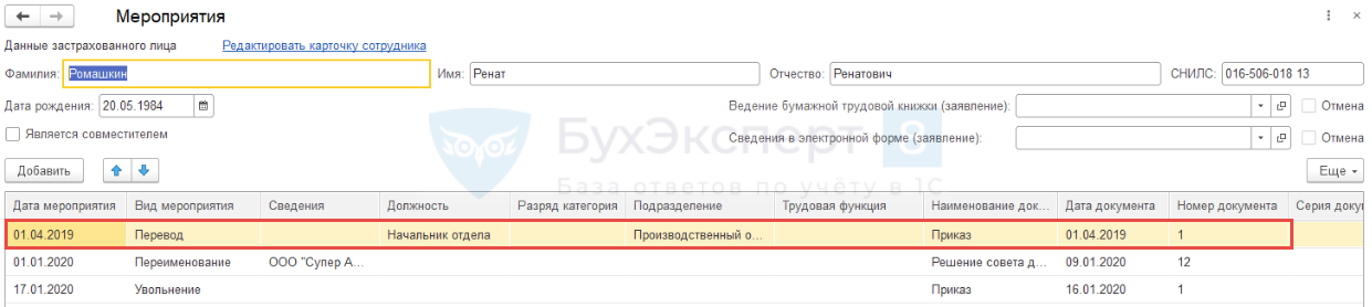 - Полностью продублировать запись о приеме на работу, увольнении или переводе на другую должность;