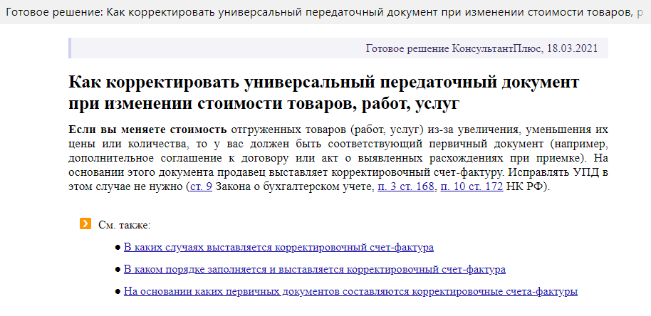 Используйте бесплатно инструкции от экспертов КонсультантПлюс, чтобы изменять УПД при изменении стоимости товаров, работ, услуг.