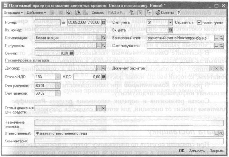 Важно отметить, что все такие взаимодействия должны быть четко отображены в банковском поручении