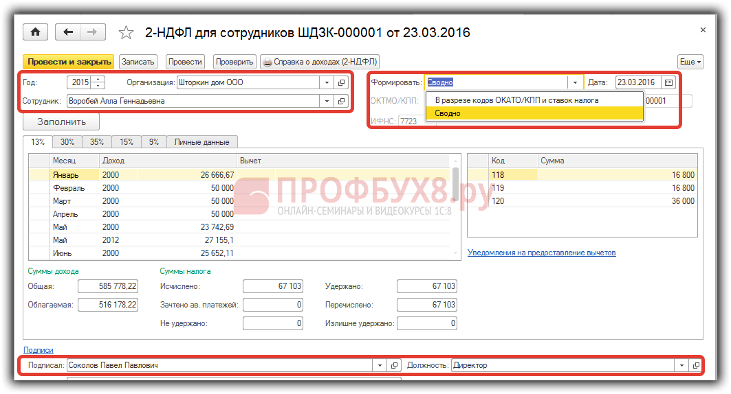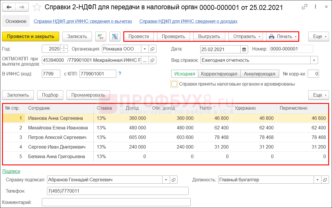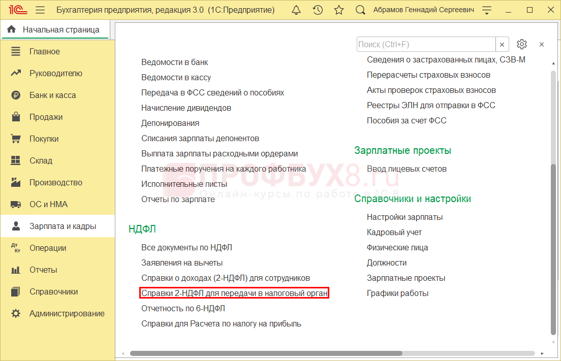 Сформировать 2-НДФЛ в 1С можно следующим образом