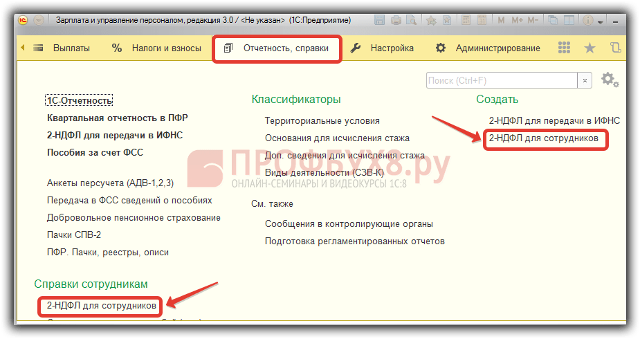 Формирование и печать справки 2-НДФЛ в конфигурации 1С 8.3 ЗУП 3.0