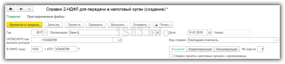 Теперь посмотрим, как сформировать подобную справку для ИФНС