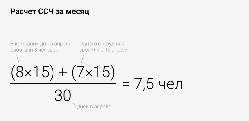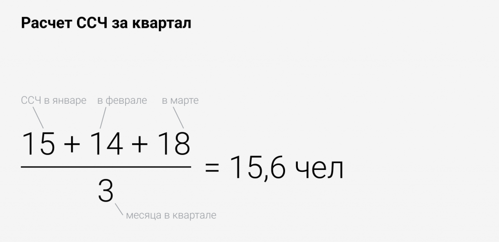 Показатель годового значения ССЧ рассчитывают по несложной формуле — складывают значения ССЧ за все рабочие месяцы и делят на 12. Выглядит это так: