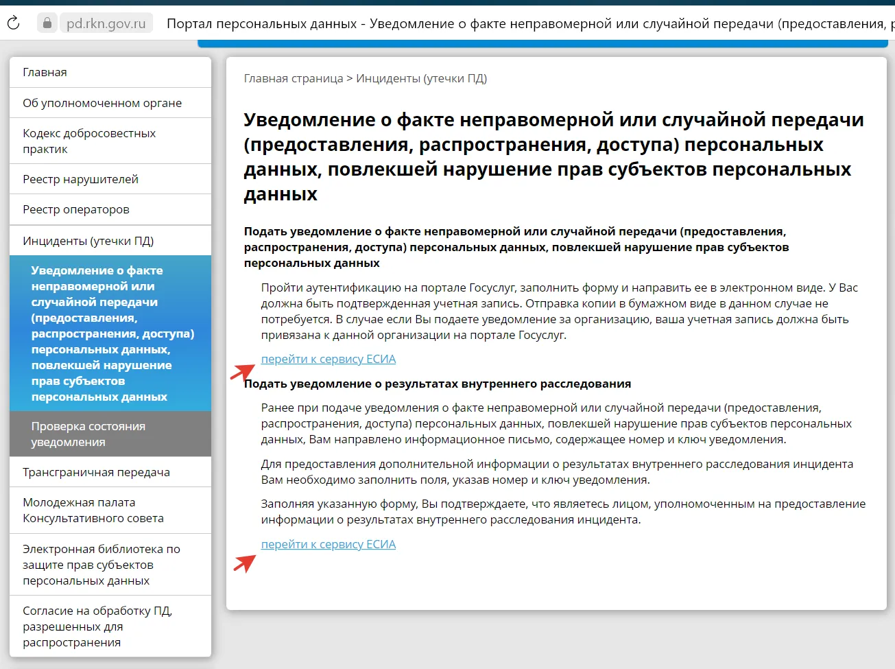 19.12.2022 Подать информацию об инцидентах и результатах их внутренних расследований можно по ссылкам с сайта РКН, пройдя идентификацию ЕСИА (Госуслуги).