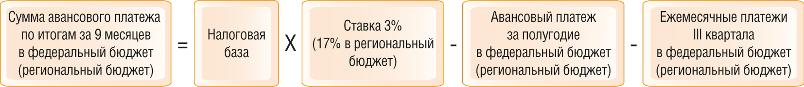 Если организация платит ежеквартальные платежи и не платит ежемесячные, она вычитает только сумму авансового платежа за 9 месяцев.