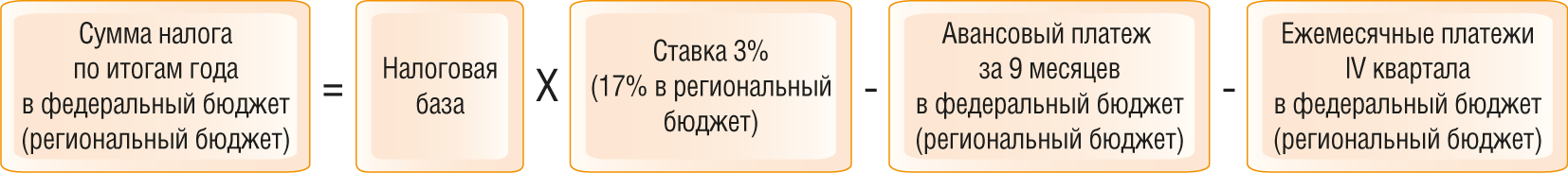 - за год к перечислению остается сумма, полученная после вычета суммы, перечисленной за 9 месяцев (абз. 5 п. 1 ст. 287 НК РФ).