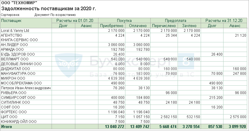 Расшифровка кредиторской и дебиторской задолженности в 1С: