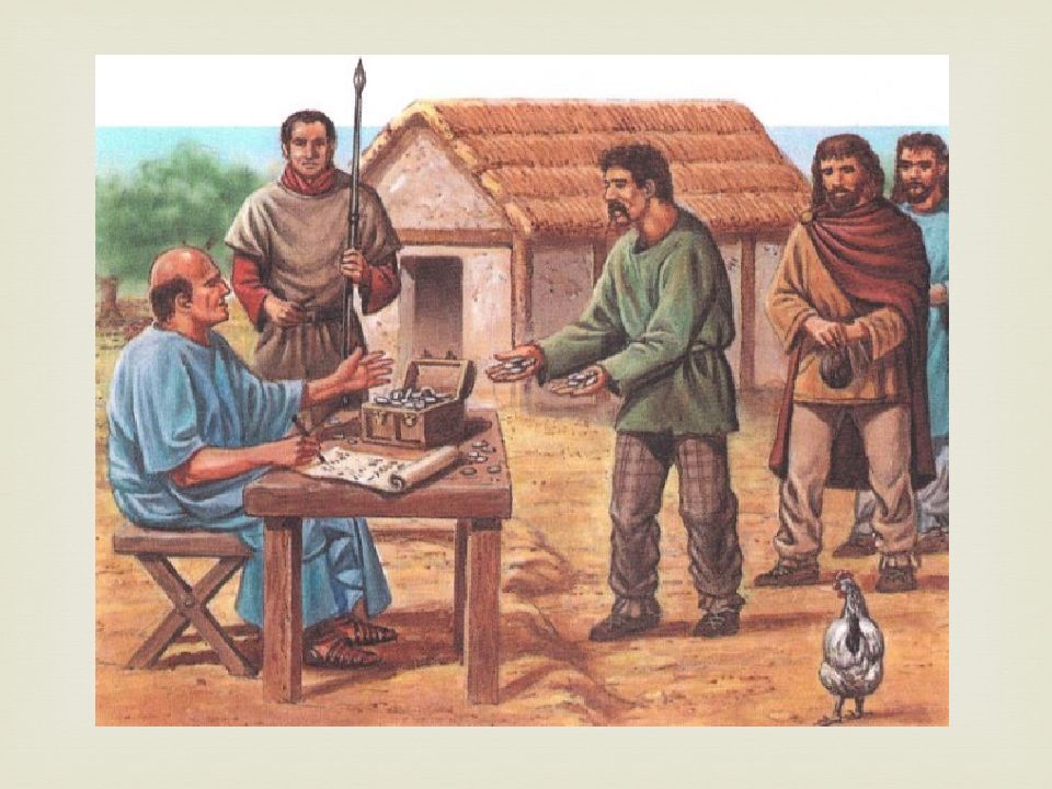 Древний Рим. Здесь система облагала налогом завоеванные земли по принципу серьезности противостояния – если коренные народы сопротивлялись захвату, то они облагались большим налогом, нежели мирно подчинившиеся.