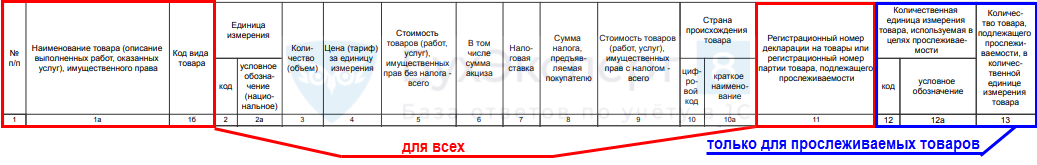 - 1а — «Наименование товара…» — графа сдвинулась правее, и у нее изменился номер;
