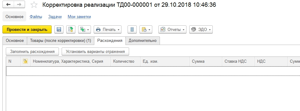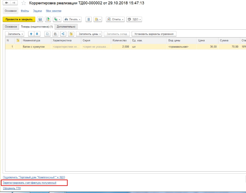 Этот вариант выбирается в ситуации, когда зафиксирована недопоставка товара. Операция осуществляется двумя видами корректировки: