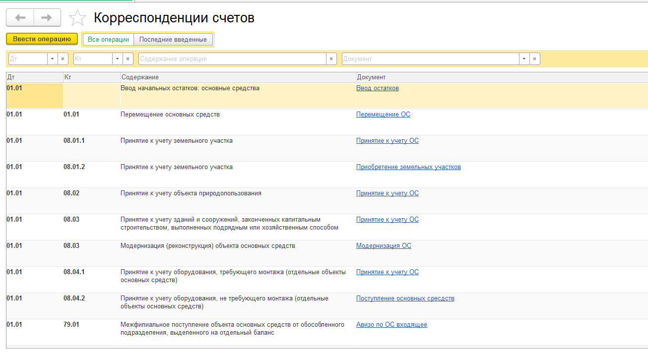 В программе 1С:Бухгалтерия Предприятия корреспонденция счетов является преднастроенной, так как данная конфигурация построена на типовом плане счетов.
