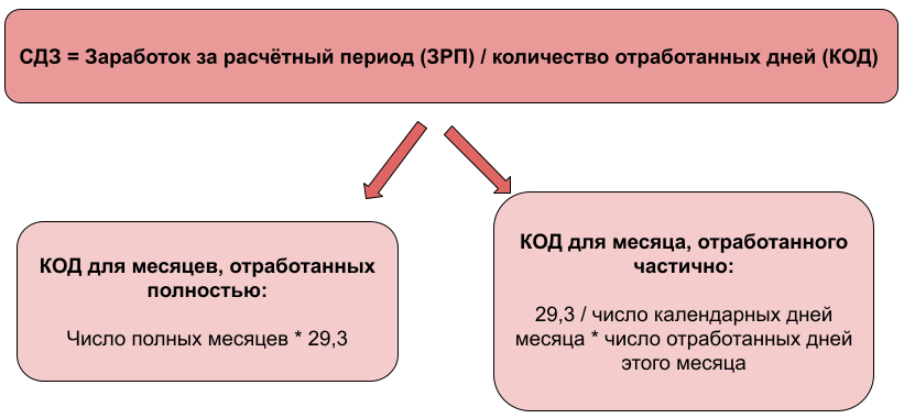 СДЗ = Заработок за расчетный период (ЗРП) / 12 / 29,3
