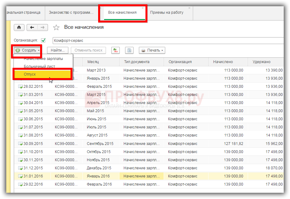 Кроме того, документ позволяет сделать расчет и начислить зарплату за время до начала отпуска, и . Рассмотрим, как в 1С ЗУП оформить отпуск в виде пошаговой инструкции.