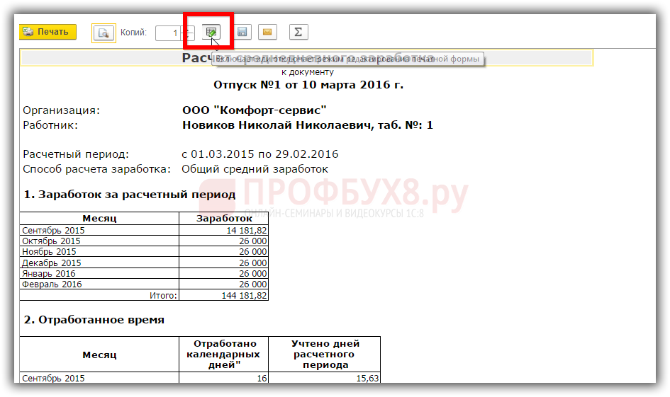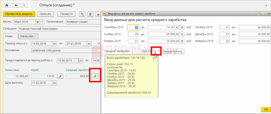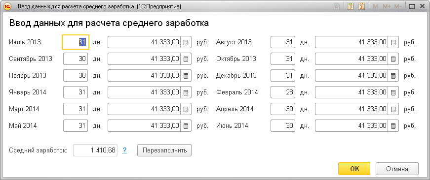 Например, командировка или отпуск наступают в том месяце, когда с сотрудником был заключен трудовой договор. В форме Ввода данных для расчета среднего заработка кнопка Дополнить по данным ФОТ заполняет данные для расчета среднего заработка информацией текущего месяца.