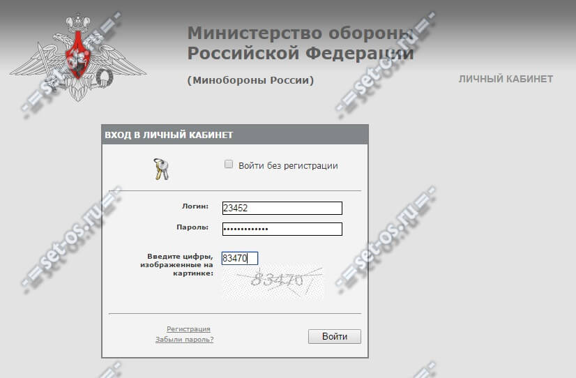 Личный кабинет военнослужащего по контракту, вход без пароля