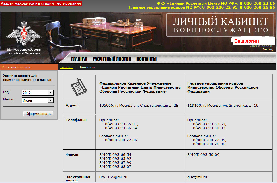 Единый расчетный центр МО РФ личный кабинет военнослужащего неразрывно связан с сайтом минобороны мир. Ру. Данная форма весьма комфортна в использовании.