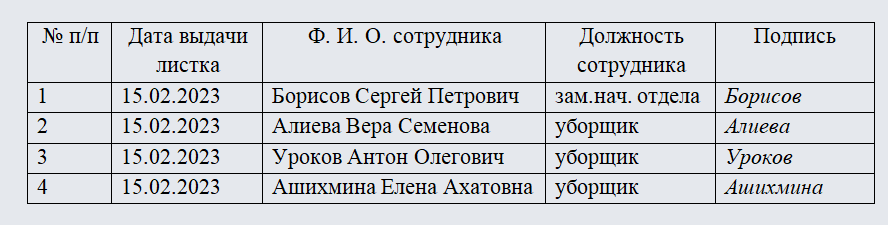 Заполнение бланка листа по зарплате