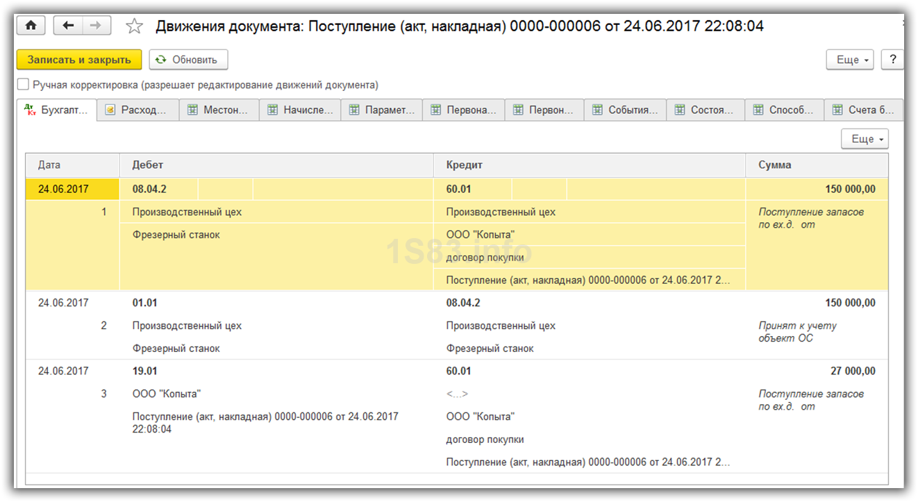 Таким образом, согласно примеру, в бухгалтерском учете компании сформированы следующие проводки по счету 02: