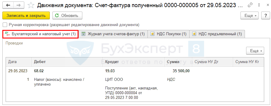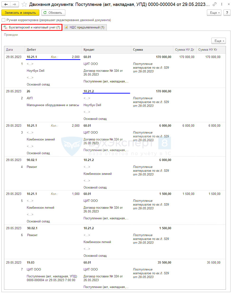 | 10 | 60 | Поступление на склад материалов от поставщика |