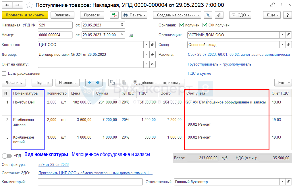 Бухгалтерский учет 10 статьи при передаче сырья и материалов и их отнесение на затраты отражаются с помощью документа «Требование-накладная». Он доступен в разделах «Склад» или «Производство». В закладке «Материалы» следует указать объекты, их количество, а также счет учета. Последний может устанавливаться автоматически либо выбираться вручную. Стоимость материала при выбытии определяется при поведении документа в соответствии с правилами, предусмотренными в 1С (по средней ст-сти или по ФИФО). В закладке «Статья затрат» необходимо выбрать счет, в который переносятся материалы, а также его аналитику. В ряде случаев ценности списываются на разные статьи или в различных аналитических разрезах. В таких ситуациях следует добавить отметку «Счета расходов в закладке «Материалы». При этом необходимо указать параметры выбытия в появившихся строках табличной части.