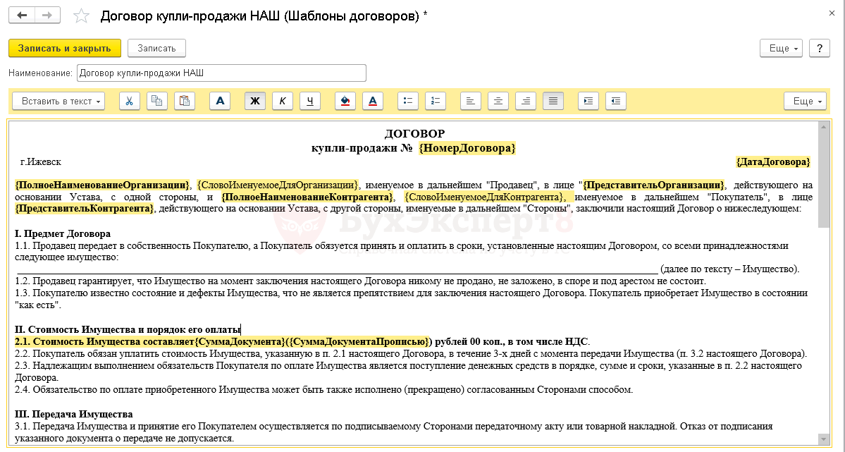 Полностью отредактированный текст шаблона договора Договор купли-продажи НАШ можно посмотреть здесь PDF