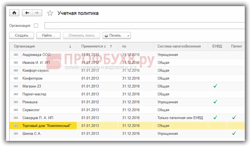 Затем откроем для редактирования актуальную учетную политику (соответствующую нужной организации и периоду):