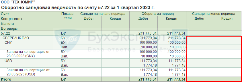После оплаты и корректировки расчетов сформируйте Оборотно-сальдовую ведомость по счету 57.22 в разделе Отчеты.