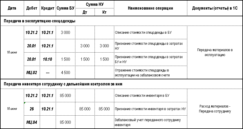 - Дт 26 Кт 10.21.1 — стоимость малоценного имущества в учтена в прочих (косвенных) затратах НУ, также актив списывается в количественном выражении;