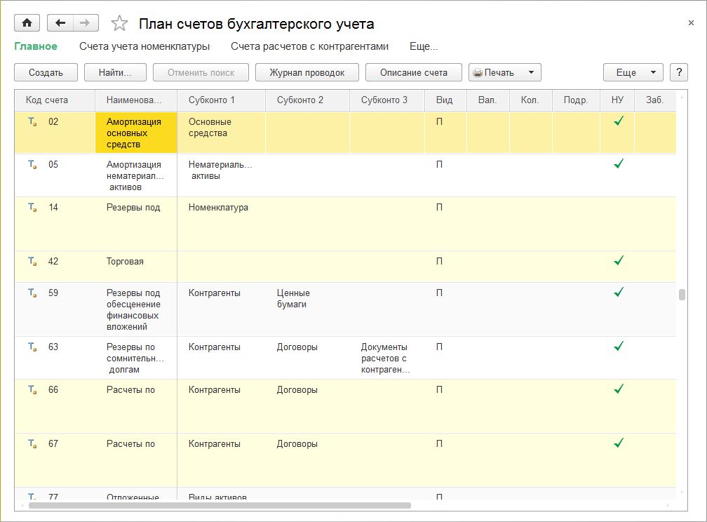 К пассивным счетам (в колонке Вид указан признак П) относятся следующие счета (рис. 3):