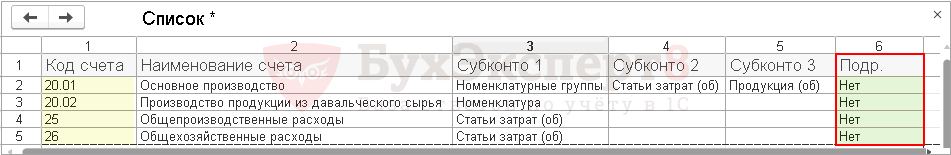 Для этих счетов можно установить аналитику учета запасов: