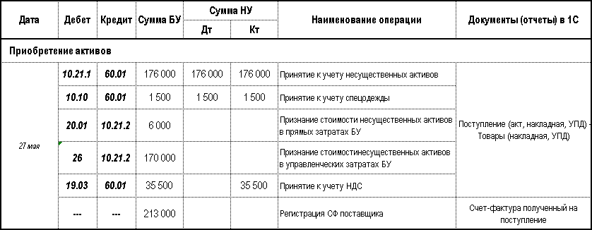 - Счет затрат — счет и его аналитика для призвания стоимости несущественного актива в затратах НУ (в расходах БУ стоимость уже учтена при поступлении).