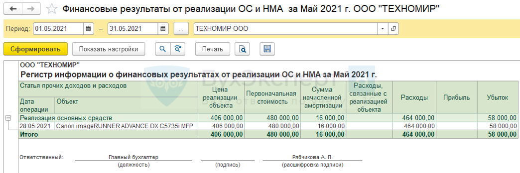 на ликвидацию основных средств и списание НМА (включая суммы недоначисленной амортизации);