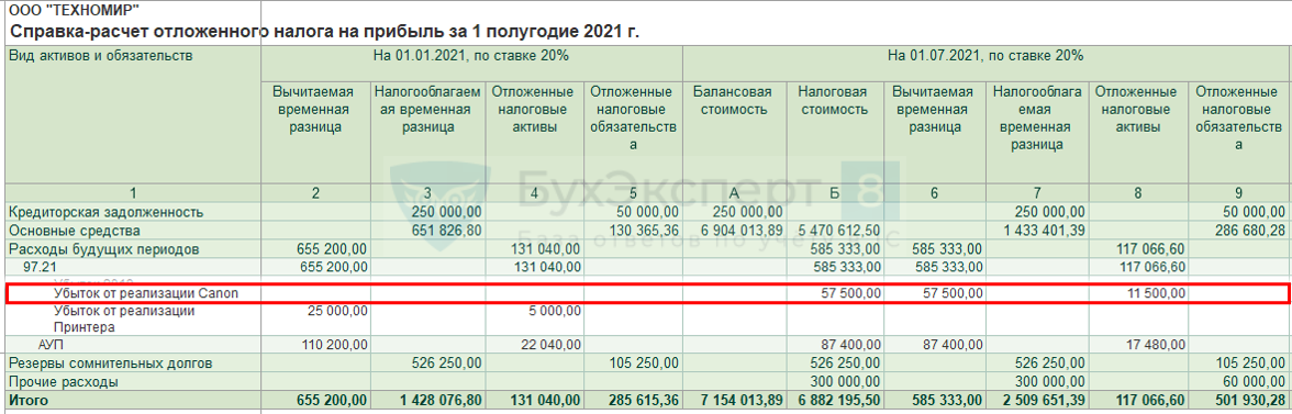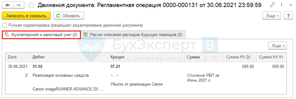 Дт 91.02 Кт 97.21 — признание в текущем месяце ежемесячной суммы убытка по НУ.