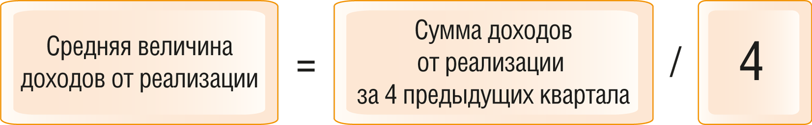 Расчет средней величины доходов от реализации за предыдущие четыре квартала осуществляется по формуле: