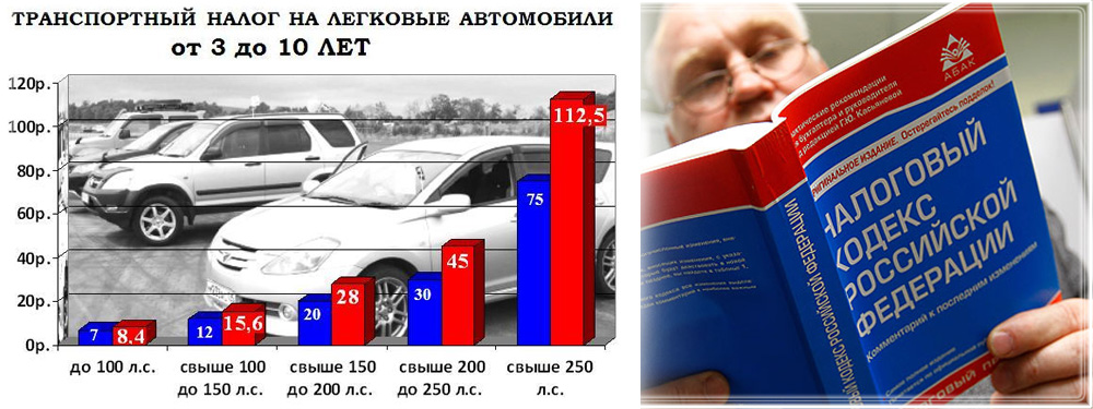 Так, например, в соответствии с Законом Ростовской области от 18.09.2002 № 265-ЗС «О транспортном налоге» (в редакции Областного закона от 02.08.2005 № 349-ЗС) в отношении легковых автомобилей с мощностью двигателя до 100 лошадиных сил, с года выпуска которых прошло 10 лет и более, размер налоговой ставки составляет 6 рублей с каждой лошадиной силы. В отношении этих же автомобилей, с года выпуска которых прошло менее 10 лет, налоговая ставка установлена в размере 10,2 рублей с каждой лошадиной силы.